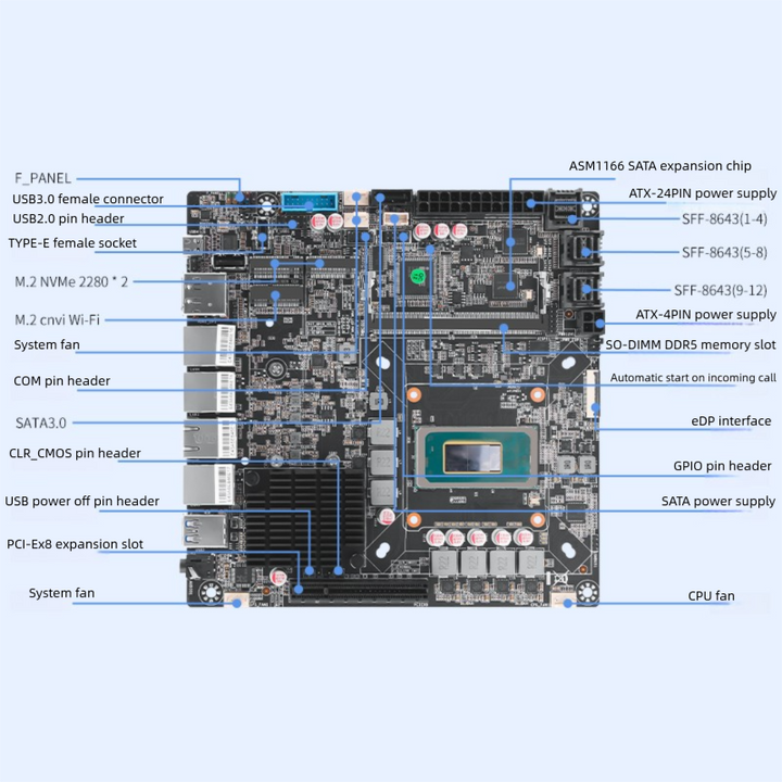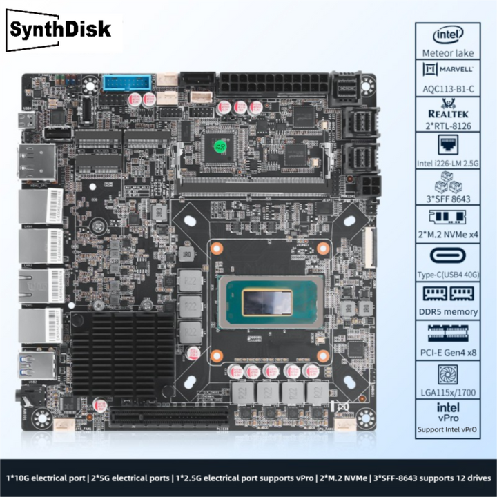 SynthDisk 14th Generation Ultra 5 125H / 7 155H / 9 185H 12-Bay 10G NAS Motherboard